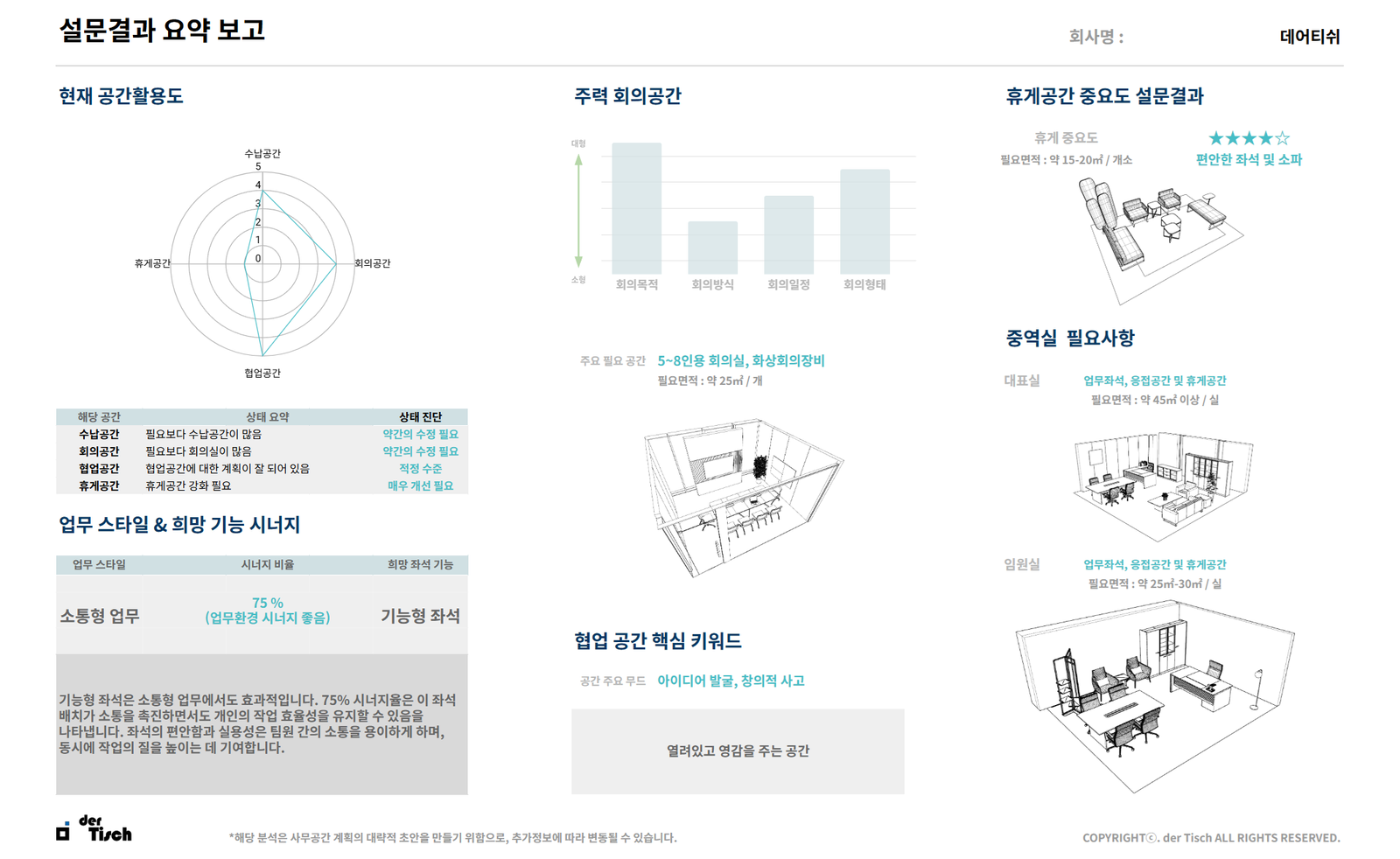 결과 리포트는 공간 개선의 명확한 방향성을 제시합니다.